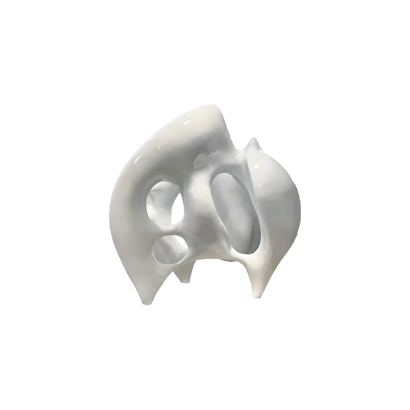 Design Philosophy This white resin sculpture captures the essence of liquid crystallization through its seamless biomorphic form. Inspired by Arctic ice flows and digital fluid simulations, its polished surface reflects 92% of ambient light to create ever-changing spatial dialogues. The dual-texture finish (satin-smooth base with pearlescent peaks) symbolizes humanity's balance between technological control and natural spontaneity.